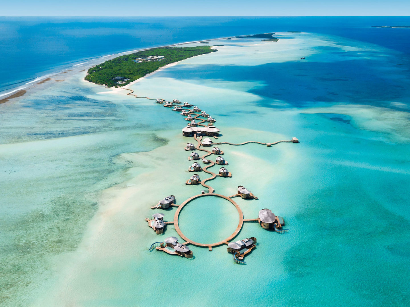 Das Conrad Maldives bietet Dir eine perfekte Verbindung aus klassischem Luxus und visionärer Architektur – verteilt auf zwei Inseln, verbunden durch eine Brücke über die Lagune.